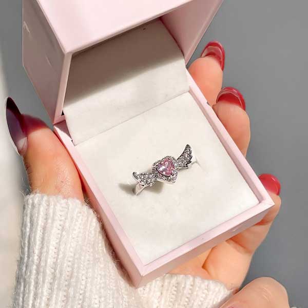انگشتر بال فرشته با طراحی خاص، فریسایز، آبکاری مقاوم رادیم و نگینهای بدون ریزش یک هدیه مناسب برای بانوان و عزیزان شماست.💕